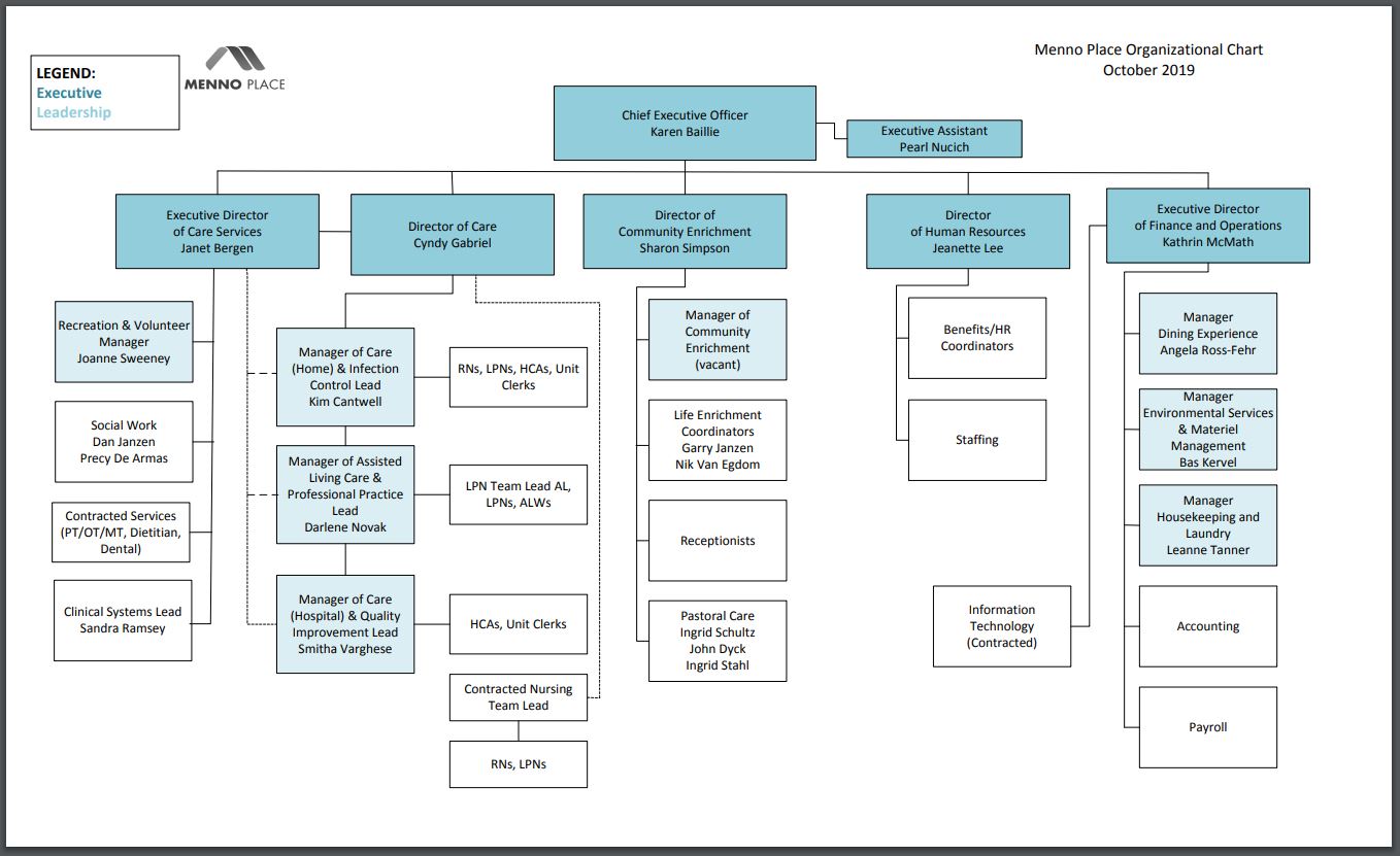 Menno Place Campus is one of the largest senior's care campuses in British Columbia. There are 700 seniors living on 11 acres across from the Abbotsford Regional Hospital. Menno Place is governed by the Mennonite Benevolent Society which founded faith-based seniors care on this location in 1953.