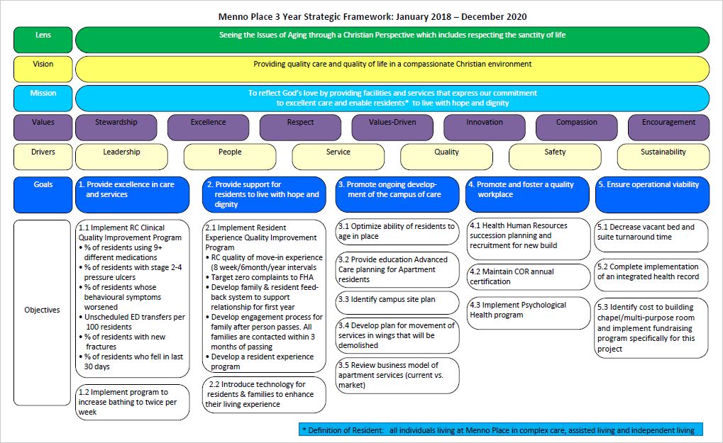 Menno Place Campus is one of the largest senior's care campuses in British Columbia. There are 700 seniors living on 11 acres across from the Abbotsford Regional Hospital. Menno Place is governed by the Mennonite Benevolent Society which founded faith-based seniors care on this location in 1953.
